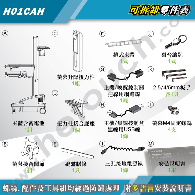 工作車.護理車.巡房車(扭力升降/鉛酸電池)-H01CAH