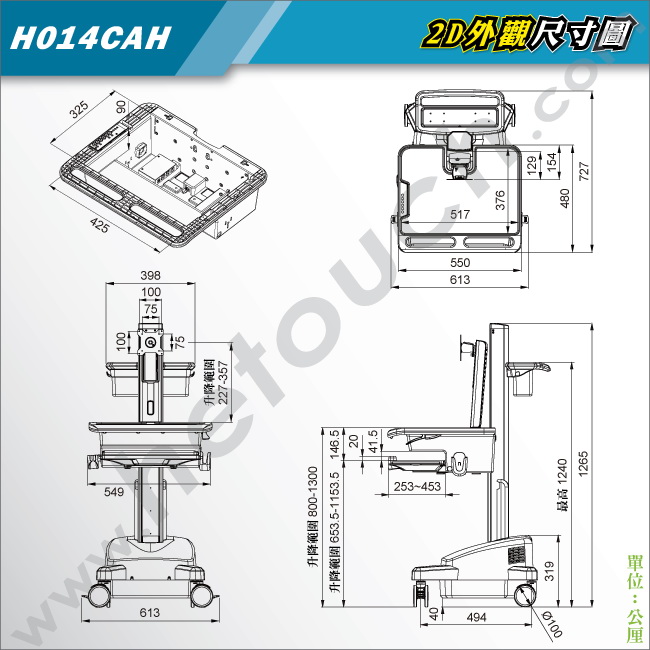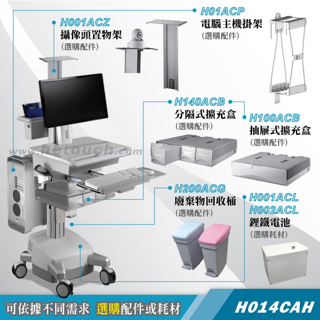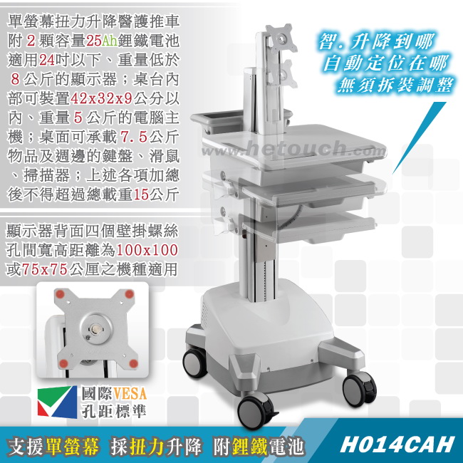 醫療推車/護理車/巡房車 - 支援單顯示器