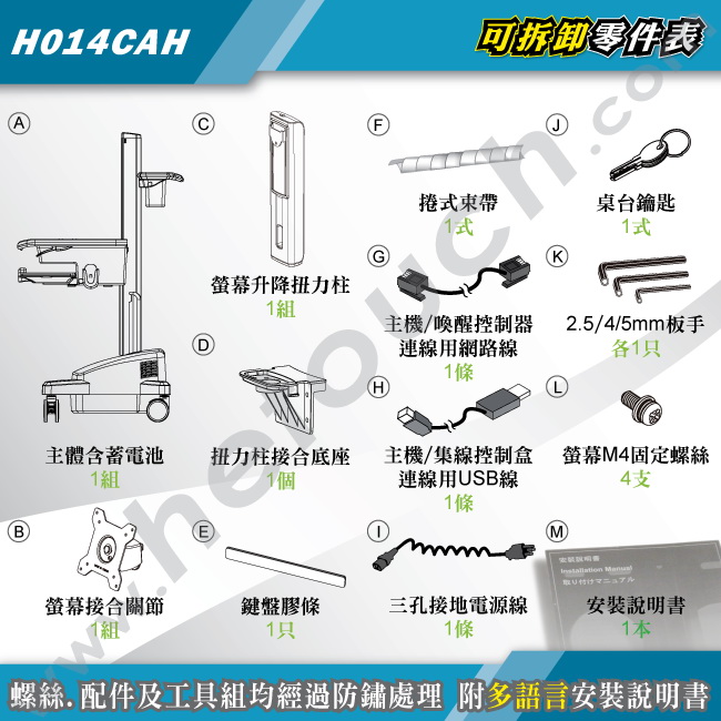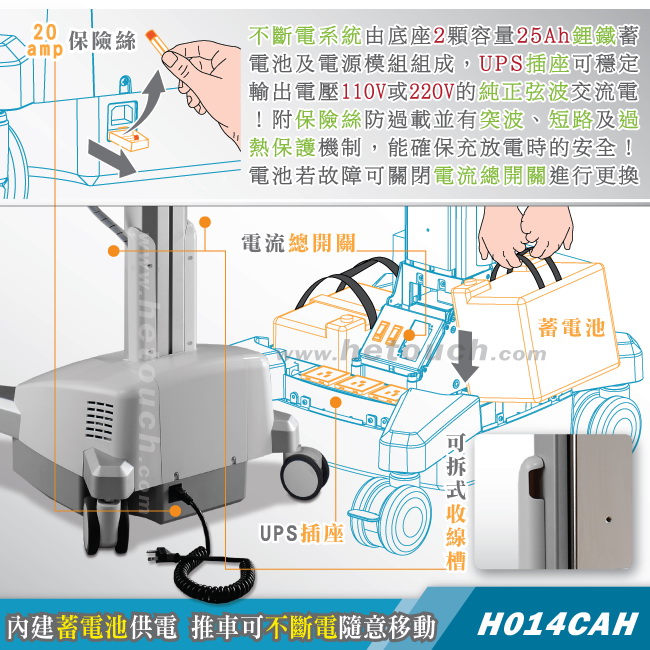 附鋰鐵蓄電池可隨時不斷電移動、隨意扭力升降!