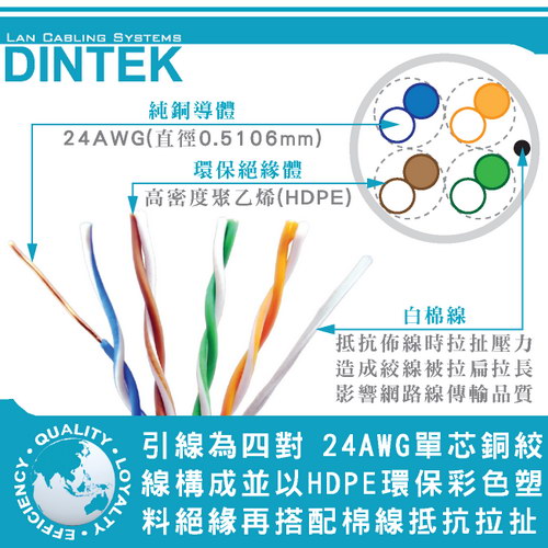 ■ 引線為4對線徑24AWG(0.5106mm)單股式(SOLID)實心純銅絞線(導體)構成