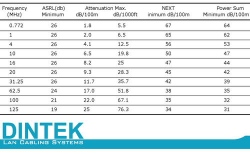 註: 任何一種電纜,依據電纜的使用長度,傳輸速率及頻寬將有幅度的遞增或遞減