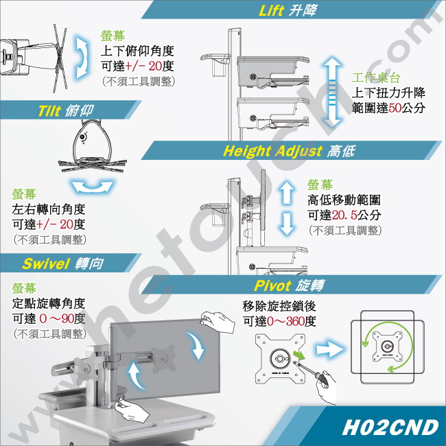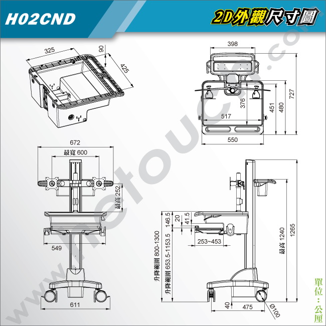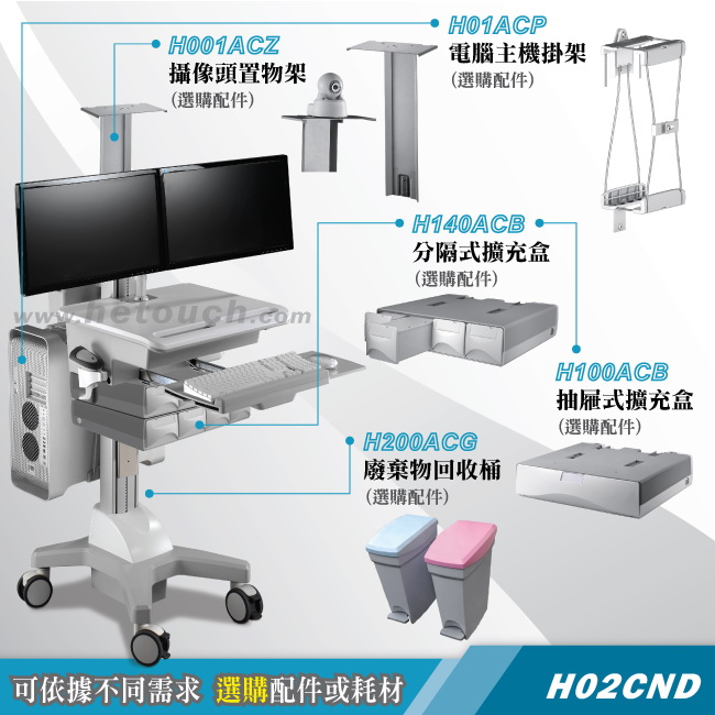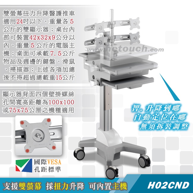 醫療推車/護理車/巡房車 - 支援雙顯示器