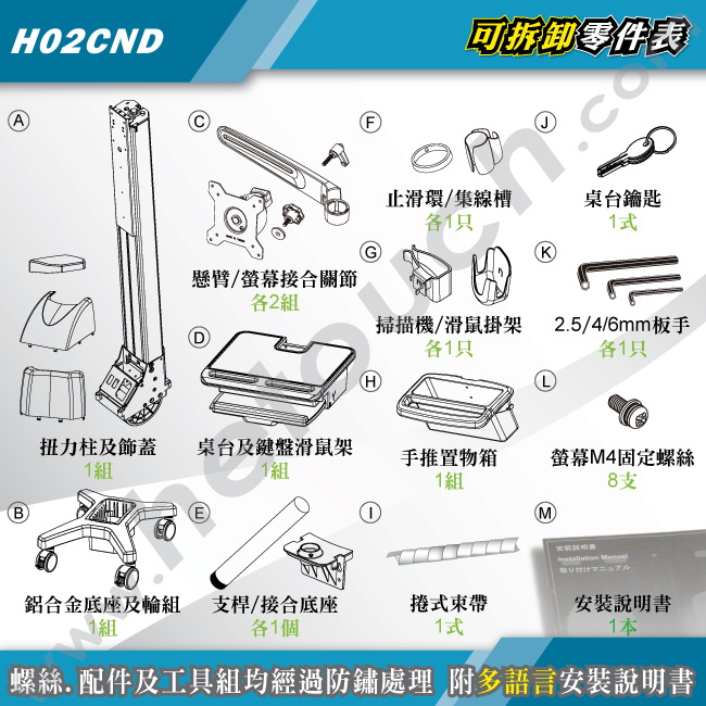 ◎螺絲、配件及工具組均經過鍍鎳或防鏽處理,通過歐盟RoHS環保規範檢驗,請您安心使用!