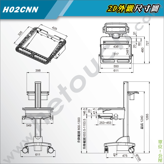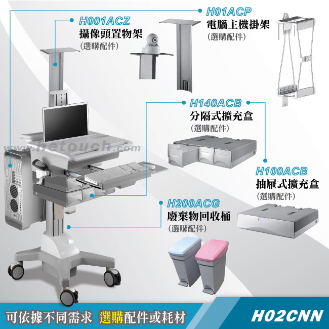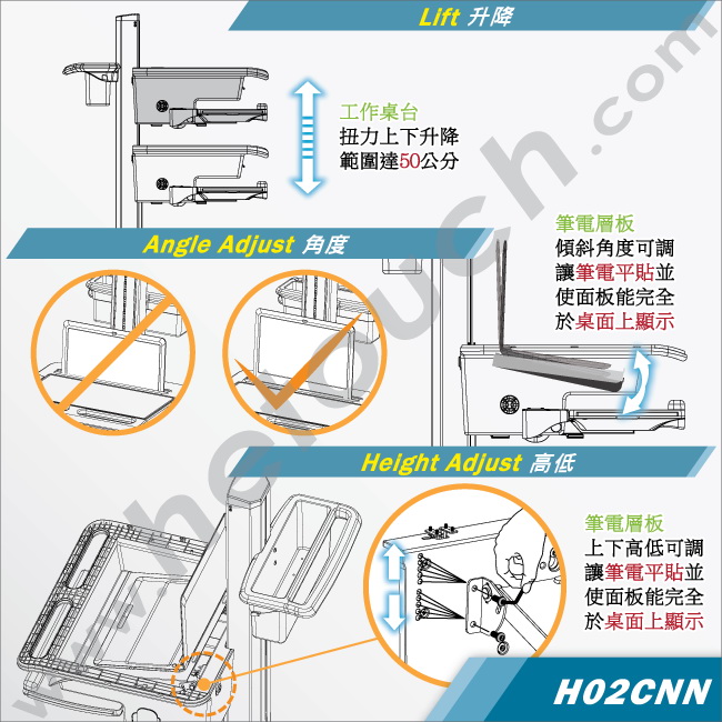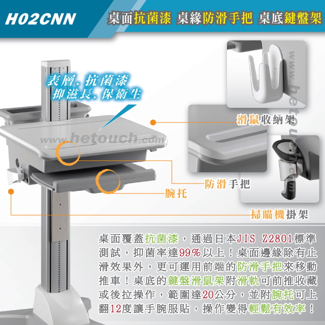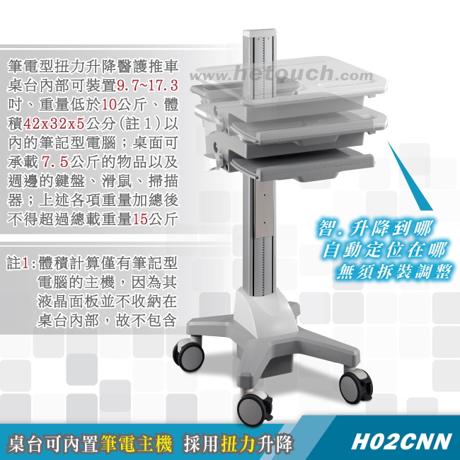 工作車.護理車.巡房車(扭力升降/無電池)-H02CNN
